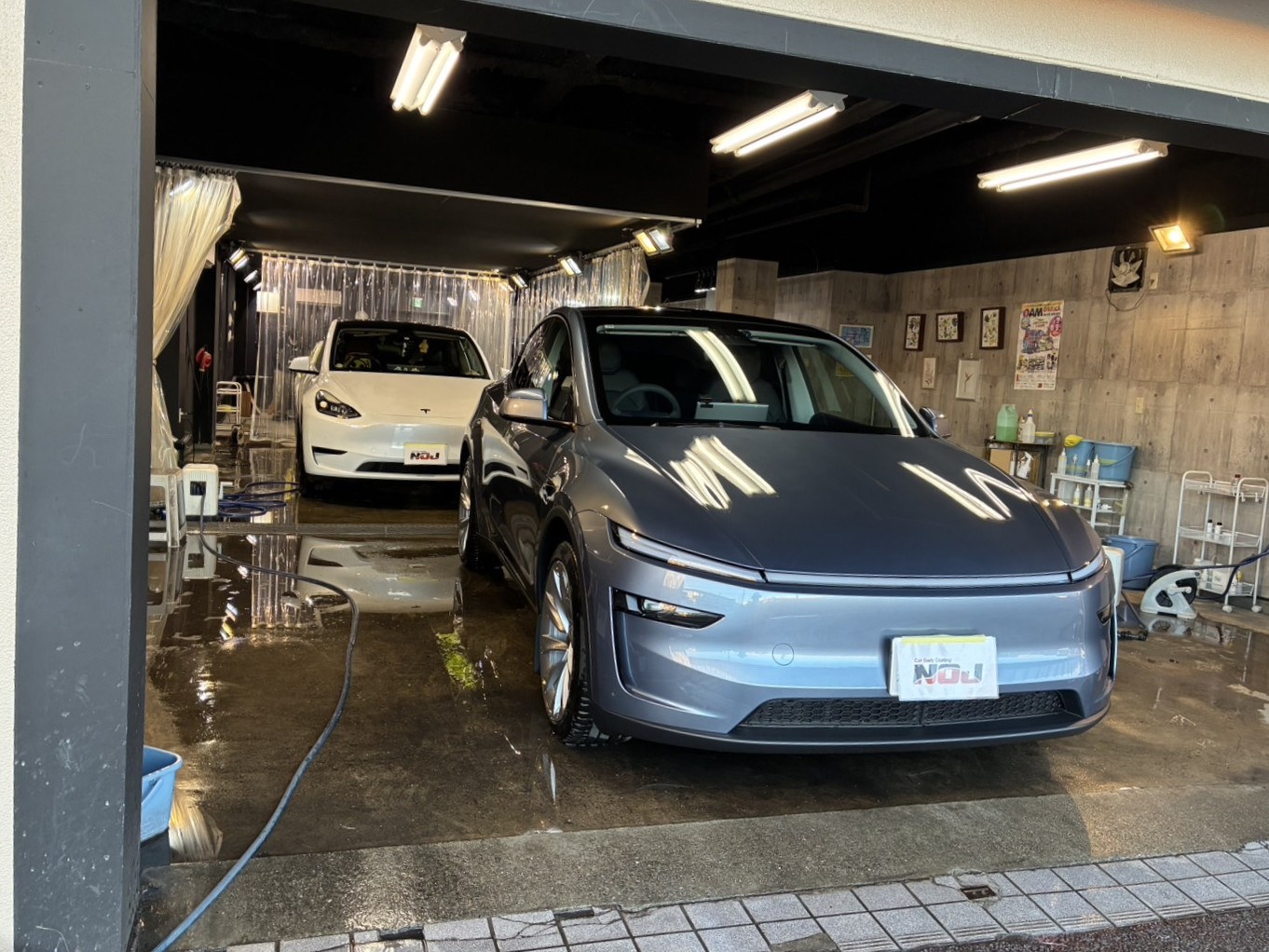 本日、NOJ千葉店に テスラ モデルYが2台同時に定期メンテナンスで入庫しました。
